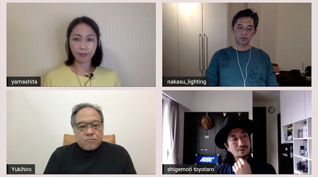 さらに、本来であれば会場に多くの現場経験者などのパネラーを迎えたいところだったが、時節柄、大人数の参加者を増やすことは難しく、またすでに現場も再開している時期で、実際のオンライン参加もむずかしい時間帯だった。また本企画のテーマ的にも相応しくないため、同じ現場を経験した撮影/照明技師/映画監督にも事前収録という形で映像でご参加頂いた。
