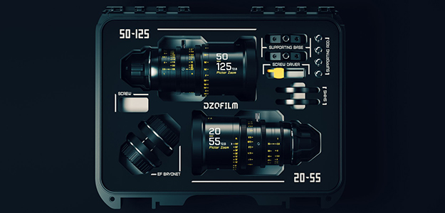 深圳のシネマレンズ専門ブランドDZOFILMは、PictorZoomシリーズの20-55mm T2.8と50-125mm T2.8を発売。スーパー35mmをカバーし、EFやPLマウントに対応。1.6kgの小型軽量で、ズーム全域でT2.8を特長とする。色は黒と白の2種類で、白はKOMODOのストームトルーパーモデルとの組み合わせに最適だ。価格はブラックモデルの20-55mmが税込289,300円、50-125mmが税込314,600円。