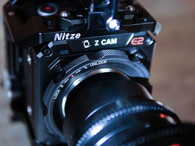 Z CAM E2-M4のマウント部だが、重量級のレンズに対応するには純正オプションのMFTアクティブロックマウントに付け替えることをお勧めしたい。今回はマウント部を交換した上でロッドサポートを使用してレンズをサポートして撮影を行った。アクティブロックマウントの剛性はかなり高く、カメラボディのマウント部のみでレンズを支える事も可能かと思われるが40mmと65mmの場合はかなりフロントヘビーになるため、レンズをサポートする方が安心・安定した撮影が行えると思う。
