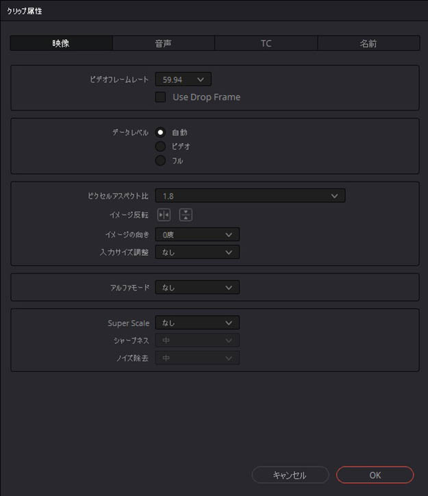 このような素材をデスクイーズして表示させる必要があるが、例えばDaVinci Resolveの場合、クリップを選択して「クリップ属性」から「ピクセルアスペクト比」を1.8にすれば、それだけでデスクイーズすることができる。