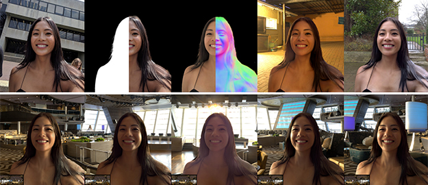 1枚のポートレート写真を素材とし、自由に背景を差し替えるとともに自由な再照明を可能とする技術。グリーンバックなどの特殊な環境無しで、人物の背景に映っている景色を差し替えることができる。本研究はグーグルの研究部門によるもので、最新のスマートフォンで使われることが想定されている。一般的なCG研究と少し異なる点は、非力なコンピュータ環境においても素早く実行できる点に主眼が置かれているところ。