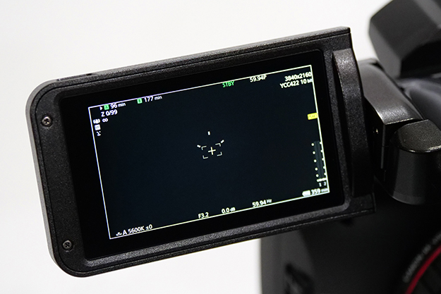 XF605では4KとHD、各記録フォーマットの組み合わせで、数多くの収録形式を選択できるので、そうしたフォーマットの切替が素早いと、収録のテストなどの行いやすい。ただし、フォーマット切替時にはHDMIなどからの出力信号が一瞬途切れることがあるため、外部レコーダー等を併用しているときは留意したい。