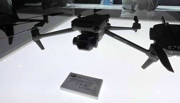 ほぼ同時期に発表されたDJIの代名詞「Mavic 3」もやはり見逃せない。今回はブースの都合上、飛行デモは行っていなかったが、Mavic 3はMavic 2 ProとMavic 2 Zoomを組み合わせ、さらにグレードアップさせたような製品となっている。iPhoneなどでお馴染みのデュアルカメラをドローンにも搭載し、その片方はHasselblad製のカメラを採用するなど、画質については一切の妥協を感じられない。