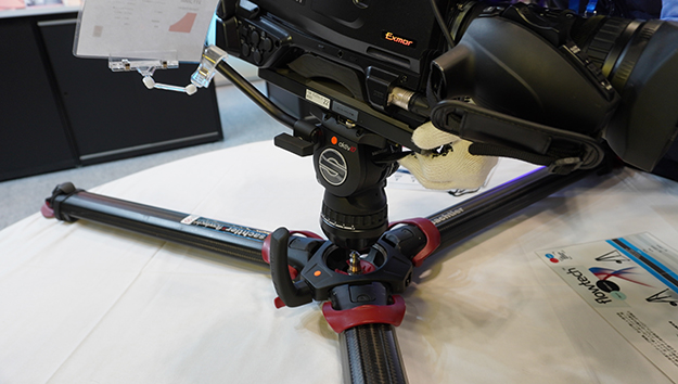 ヴァイテックプロダクションソリューションズのブースでは、Sachtlerの最新雲台である「aktiv」「FSB MkII」、カーボンモノコック三脚「Flowtechシリーズ」、そしてLED照明「GEMINIシリーズ」などの展示を行った。