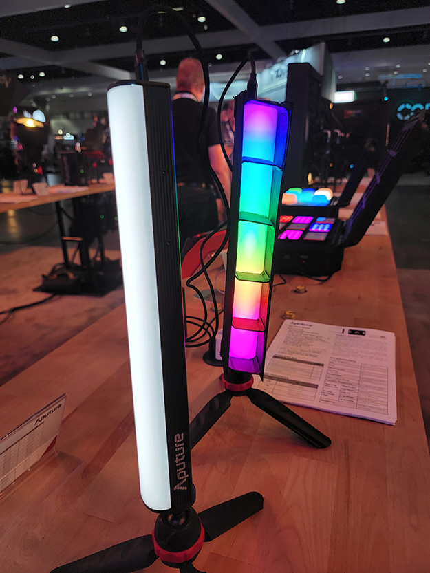 新製品であるチューブライト「MT Pro」の全長は約30cm。36個のLEDピクセルを搭載し、高ピクセル密度を誇る。Sidus-linkで制御可能、ワイヤレスDMX実装、内蔵バッテリーで100分の電源供給が可能だ。