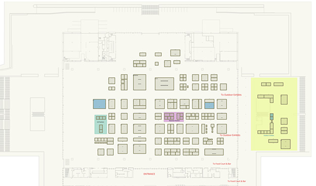 ガラス張りのドアを通り抜けると、そこは天井が高く、垂木を上部に配した巨大なコンベンションホールだった。例年ほど多くのベンダーや出展者を集めていないようなイベントにしては、とても大きなスペースだ。このホールは今年のイベントの規模にしてはかなり広かった。