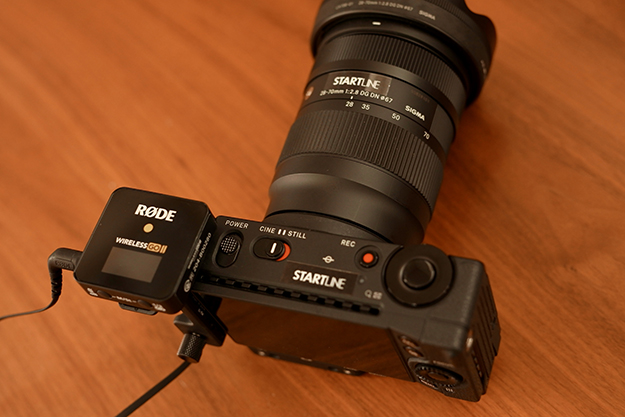 SIGMA fpと組み合わせて使用しているのはRODE VideoMic Go IIです。自分のテーマである小型軽量を満たしている素晴らしいマイクです。とにかく軽量で、音質はベスト。iPhoneにも専用USBケーブルを使用することで、デジタル接続ができることも気に入っています。