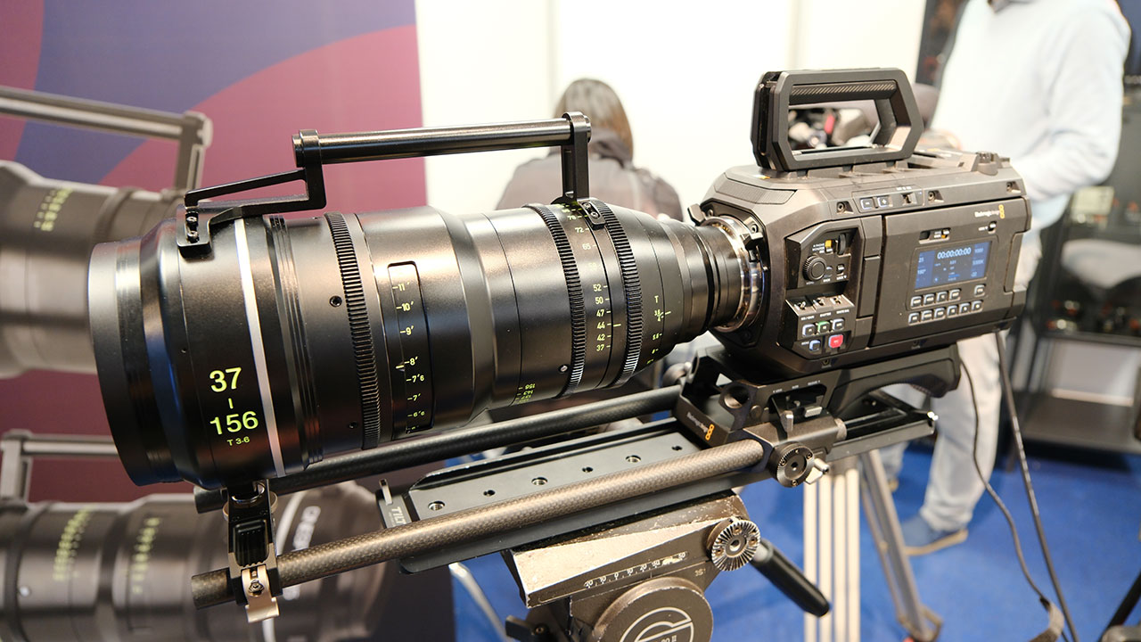 ブースでひときわ存在感を放っているのが、先日開催された「PRONEWS SUMMIT 2025」で世界初公開され、大きな話題を呼んだシネズームレンズ「CINESPEED65 37-156mm Cinezoom」である。会場では、Blackmagic Design社の「Blackmagic URSA Cine 17K」カメラに装着された状態で展示されており、多くの映像制作者がその性能を確かめていた。ARRIや富士フイルムなど、各社から65mmフォーマットに対応した中判シネマカメラが続々と登場する中、KIPONは1年以上前からこの市場の動向を予測し、レンズ開発を進めてきたという。このズームレンズの価格は48,800ドルに設定され、すでに注文を受け付けており、アメリカ、日本、ヨーロッパで販売準備が整っている。