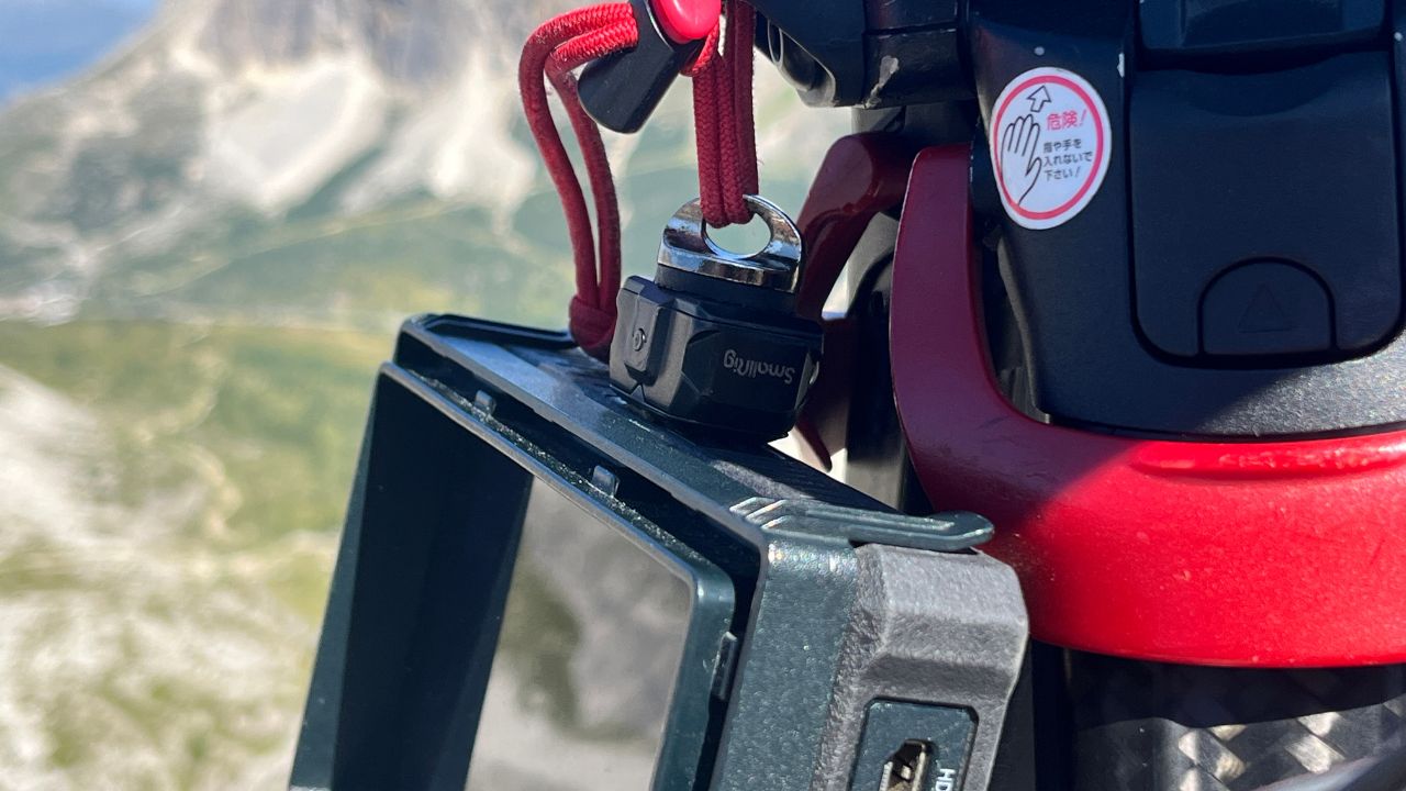 私の場合はモニターの底面にこのアダプターの「コマ」を常時装着しておき、それに嵌合する「座」をいろいろなところに取り付けてあります。そうすることで手持ち撮影、三脚撮影、ジンバル撮影とカメラの構え方を変えた時にもすぐにモニターを付け替えられるようにしています。