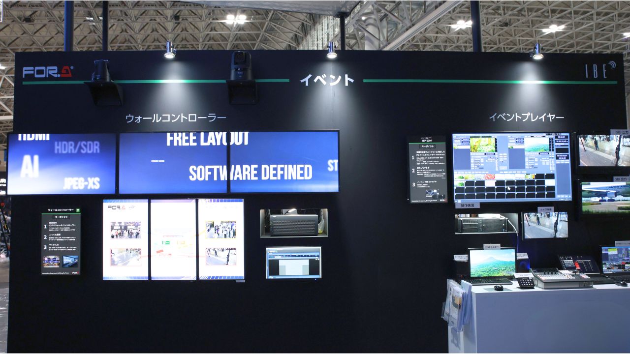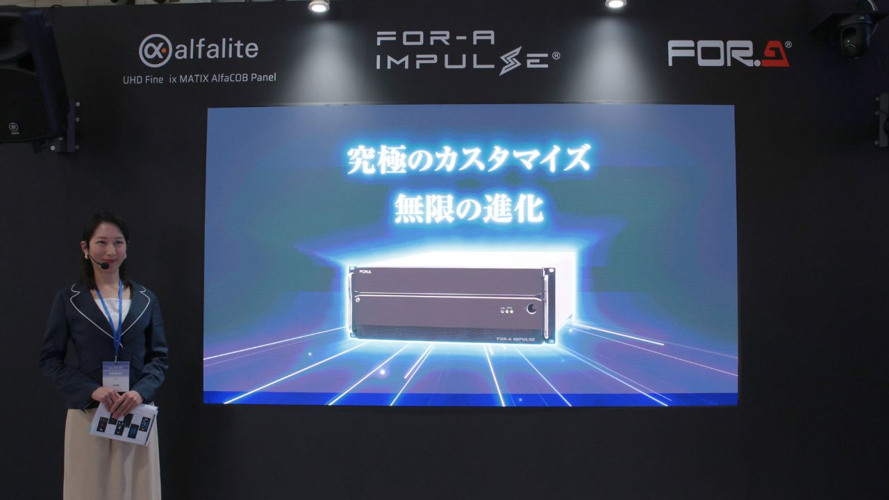 「イベントソリューション」エリアでは、ウォールコントローラーやイベントプレイヤーを展示。ライブプロダクションシステムコーナーでは、新製品となるルーティングスイッチャーとビデオスイッチャーを紹介している。さらにメインステージでは、スペイン・Alfalite社製LED Wallを使用したFOR-A IMPULSEのプレゼンテーションも実施。迫力ある映像演出とともに、そのポテンシャルを体感できる内容となっている。
