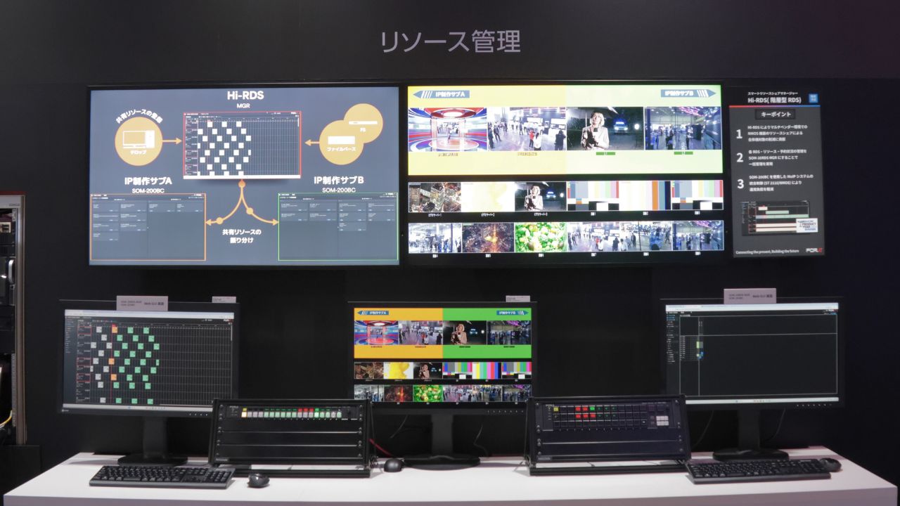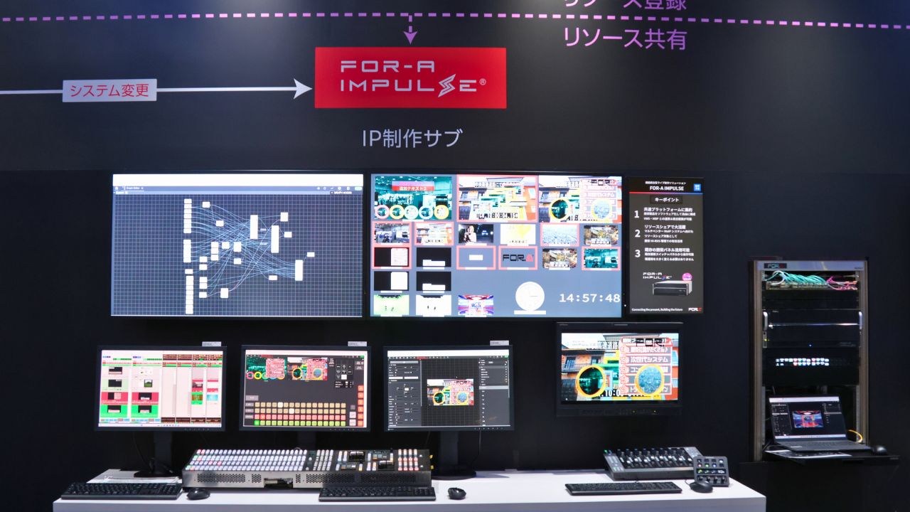 「FOR-Aハイブリッドソリューション」エリアでは、機能統合型ライブ制作システム「FOR-A IMPULSE」を中心に、Hi-RDS(階層型RDS)やソフトウェアデファインド製品を活用したリソースシェア環境を紹介。MoIPとベースバンドが共存する新しい制作環境を提案している。