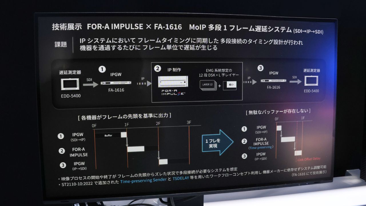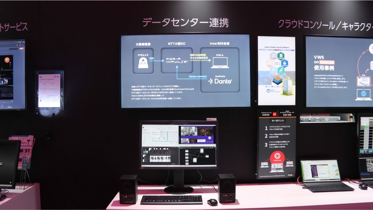 また、NTTスマートコネクト協力のもと、NTTデータセンター内に設置したFOR-A IMPULSEをリモート操作する実演も実施。