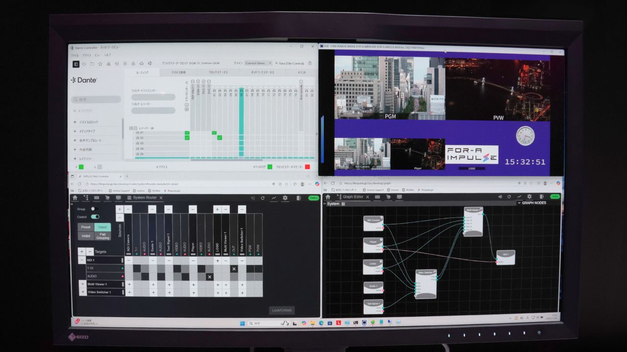 中でも特に注目を集めているのが「FOR-A IMPULSE」だ。朋栄製品の幅広い機能をソフトウェア化し、共有プラットフォーム上に集約。柔軟なシステム構築と運用を実現する、ソフトウェアベースの機能統合型ライブ制作ソリューションとなっている。ソフトウェア化された機能はNodeとして定義され、これらを組み合わせることで処理パイプラインを構築。柔軟かつ自由度の高いシステム設計が可能になる。