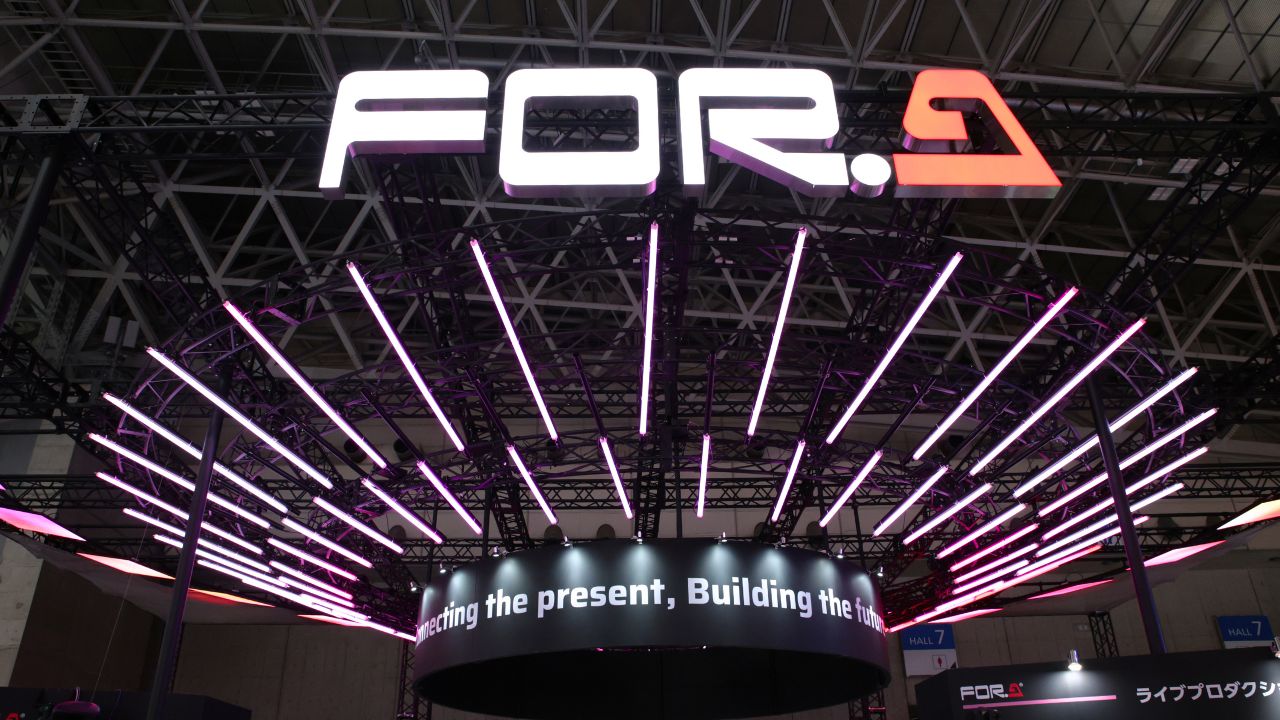 朋栄ブースでは、創業55周年を迎え、新たなメインテーマ「Connecting the present, Building the future」を掲げて出展。ブース内は「FOR-Aハイブリッドソリューション」「AI/クラウドソリューション」「イベントソリューション」の3エリアで構成され、多彩な展示が行われている。