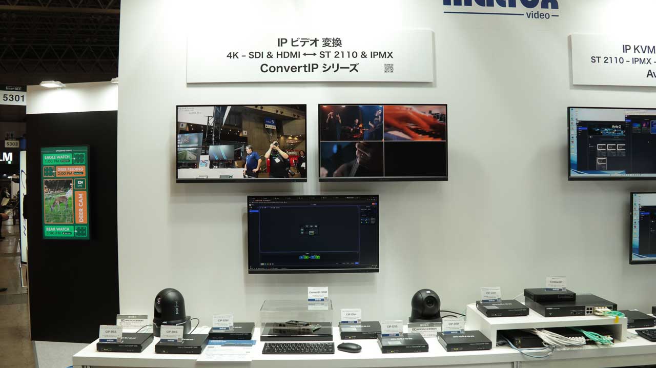 ブースでは、RTSP信号やWebページを受信し、シンプルな操作でビデオウォールを構築するデモを実施。映像設備のIP化に伴う新しい運用の形を示していた。