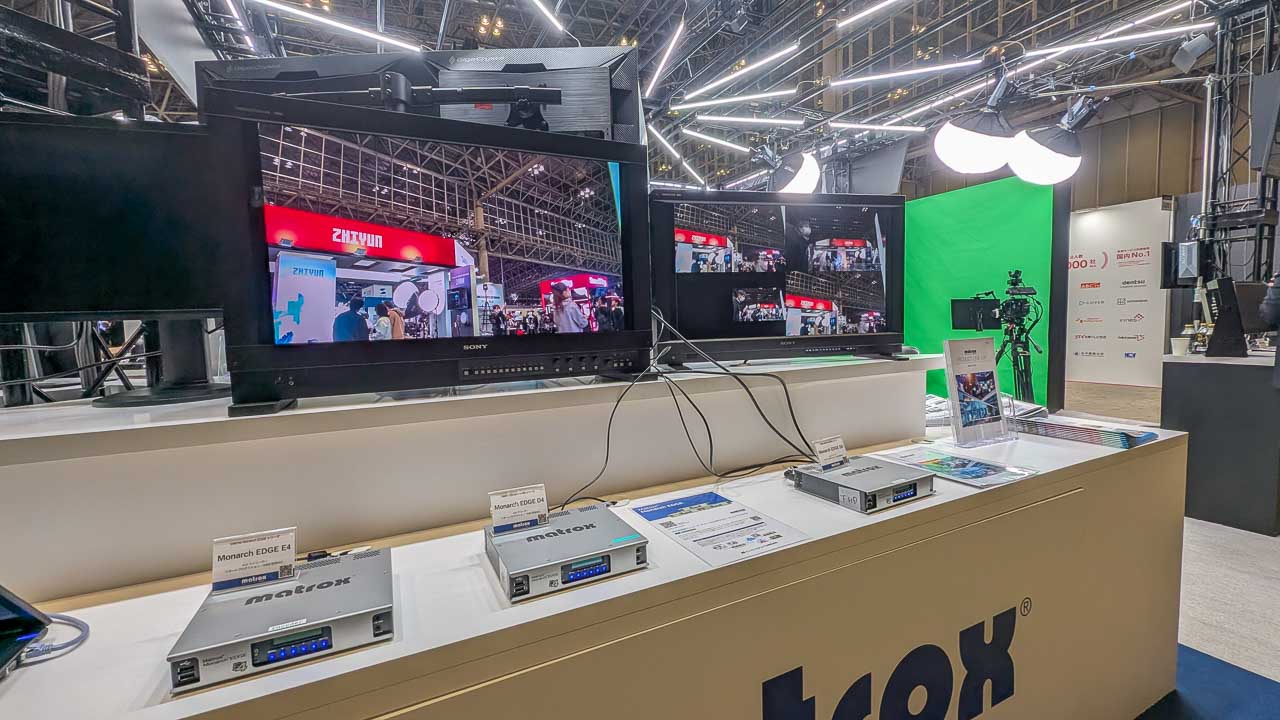 ブースでは、4K非圧縮やJPEG XSを用いた高品質IPストリーム、「Matrox ConductIP」との組み合わせによるルーティング制御、マルチビュー表示など、多様な環境への適用を体験できるデモが行われた。シンプルなGUIで直感的に信号の流れを制御できる点が印象的だった。